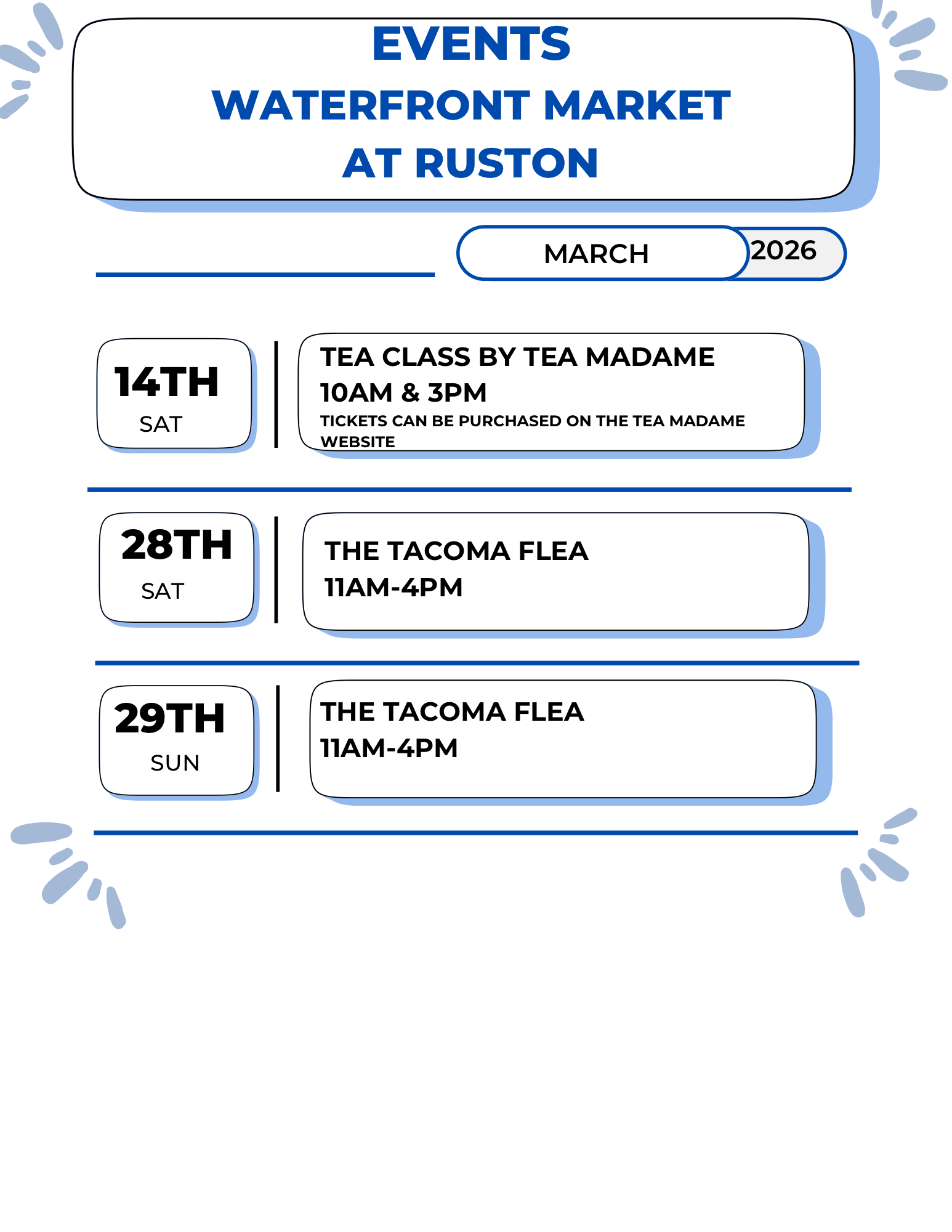 At Waterfront Market at Ruston, we love bringing the community together through fun, engaging, and unique events all year round! Our events showcase a diverse mix of local vendors, delicious food, live entertainment, and exciting activities for all ages. Whether you’re looking for handmade crafts, specialty foods, or a place to connect with friends and family, our events offer something for everyone.